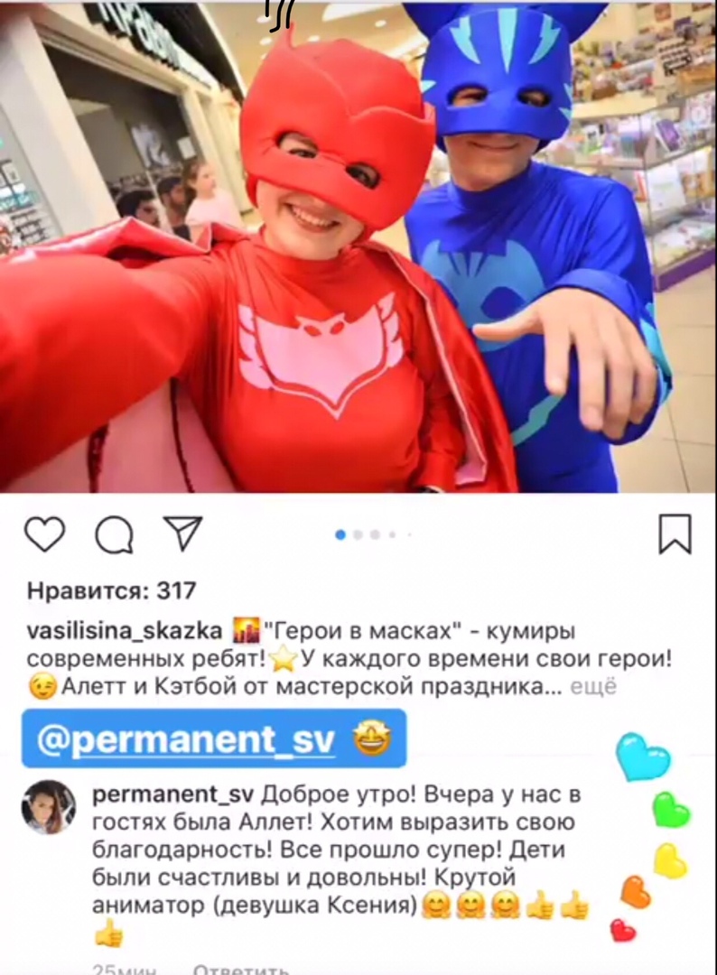 - Больше фото, видео, а также отзывы о наших праздниках можно посмотреть на нашей странице ВКонтакте и Instagram
