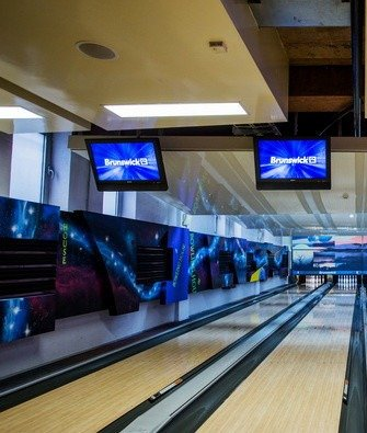 "Bowling Haus" - это 10 дорожек оборудования для боулинга компании "Brunswick", четыре из которых оснащены автоматически поднимающимися бортиками для детей, не позволяющими шару, брошенному ребенком, скатываться в желоб.