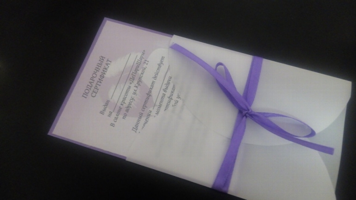 Да конечно подарочные сертификаты Вы можете выписать у нас на любую услугу и на любую сумму или посмотреть в разделе Подарочные сертификаты http://www.slivki.by/podarochniy-sertifikat-minsk-skidka-deparisharm