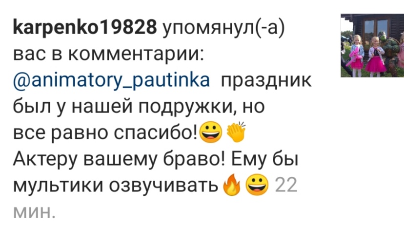 - услуги аниматора: