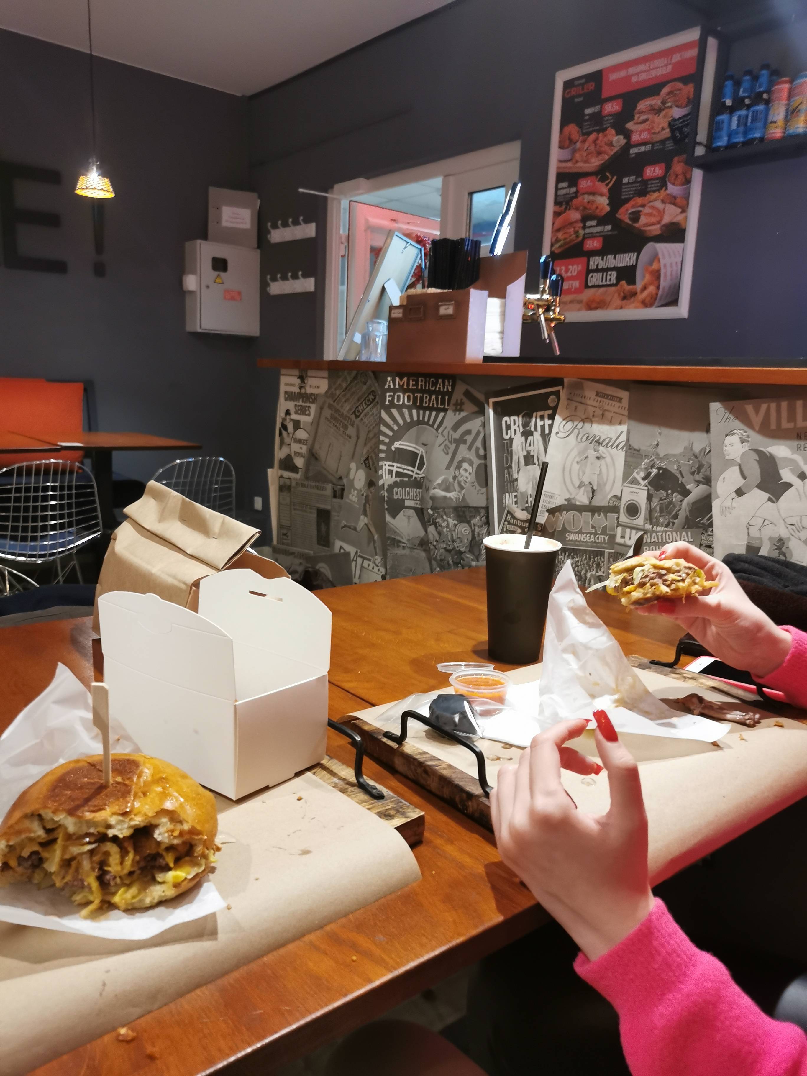 ЛАМАвое место, бомбовые бургеры с хорошей говядиной и соусами, крылья во фритюре не оценил, видимо, просто не мое.