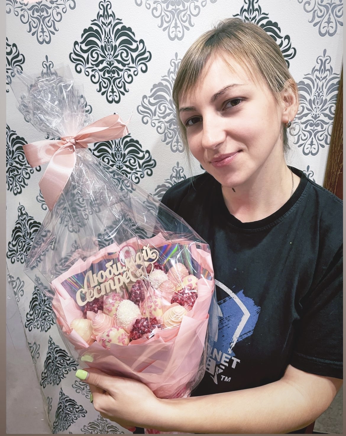 Возможность добавить в букет топпер стала решающей в выборе исполнителя, т.к. подарок предназначался от брата сестре.