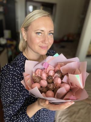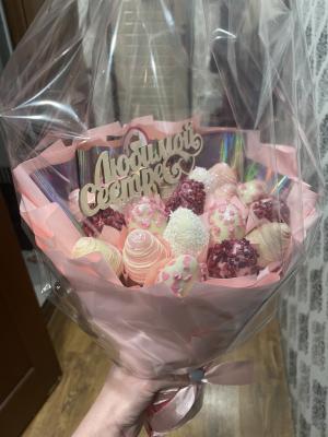 Заказывали клубнику в шоколаде на день рождения. Букет необычный и красивый.