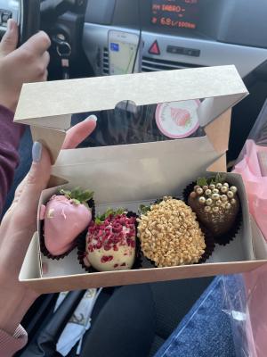 Оригинальный подарок, вкусный шоколад, свежая клубника. Имениннице очень понравилось!!!