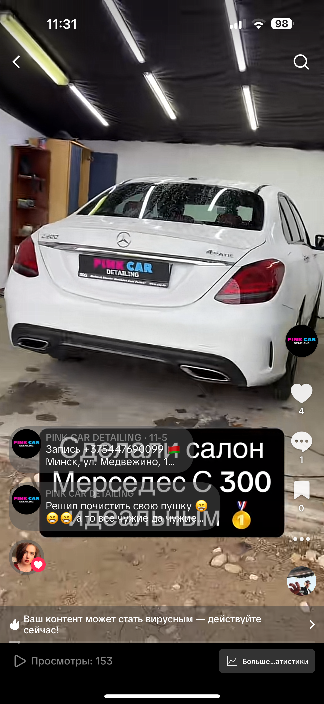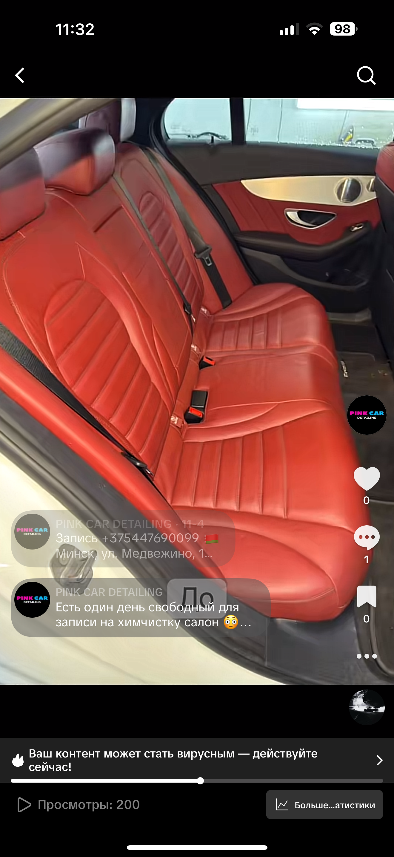- Промокод дает право на скидку до 50% на комплексную химчистку салона автомобиля от компании "Pink Car Detailing"
