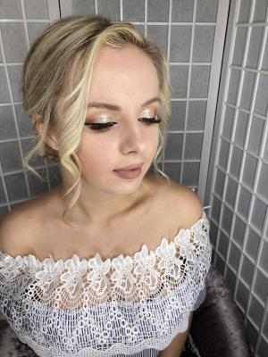 - "Smoky eyes", вечерний макияж с использованием перламутровых текстур, блесток.