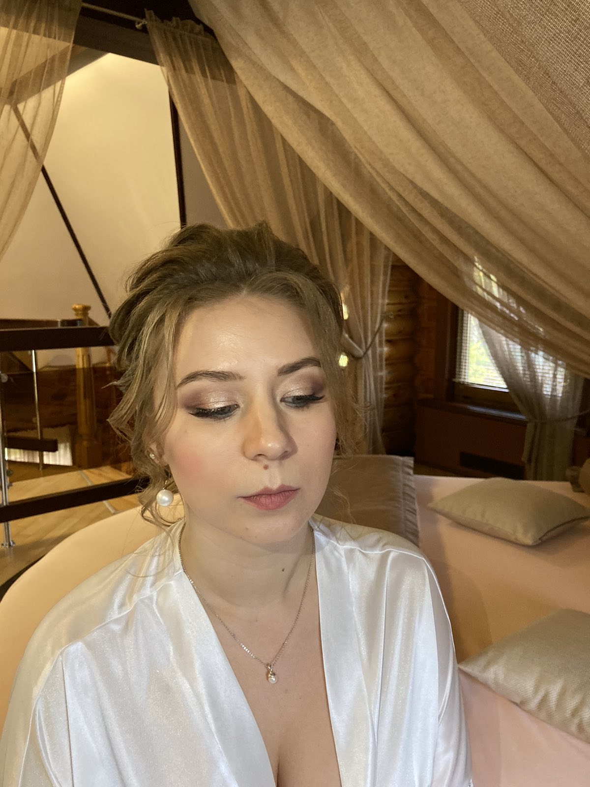 Спасибо Наталье за образ. Честно сказать, я немного переживала перед приходом, тк до этого мне визажист рисовали кого-то, но не меня, я имею ввиду не подчеркивали мои черты, а просто делали макияж, как на модели. Но Наташа мне сделала очень "мой" макияж, я не чувствовала маску на лице, а все гости только и говорили, какая я красивая и очень молодо выгляжу. Макияж продержался отлично, ничего не скаталось, немного ушёл объем у причёски, но я попала под дождь, хоть и была на машине. Всем рекомендую!