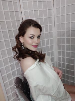 Добрый день, лёгкая волна и нюдовый макияж, доплата за длинну и пучки , если нужно...