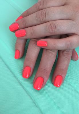 - наращивание ногтей + долговременное однотонное покрытие: