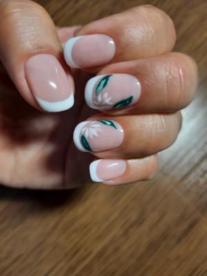 - наращивание ногтей + долговременное покрытие френч: