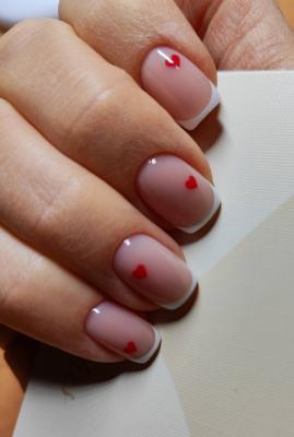 - коррекция ногтей + долговременное покрытие френч:
