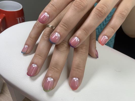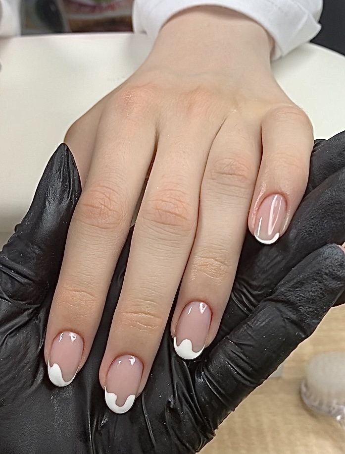 - коррекция ногтей + долговременное покрытие френч: