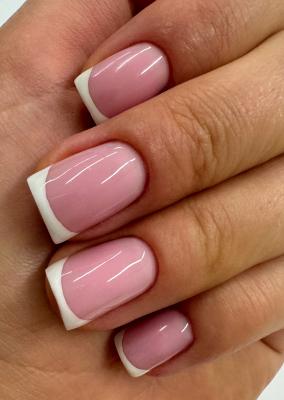 - наращивание ногтей + долговременное покрытие френч: