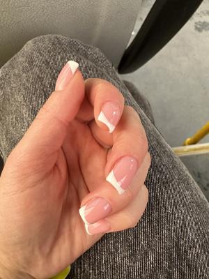 - коррекция ногтей + долговременное покрытие френч: