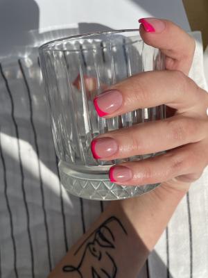 - наращивание ногтей + долговременное покрытие френч: