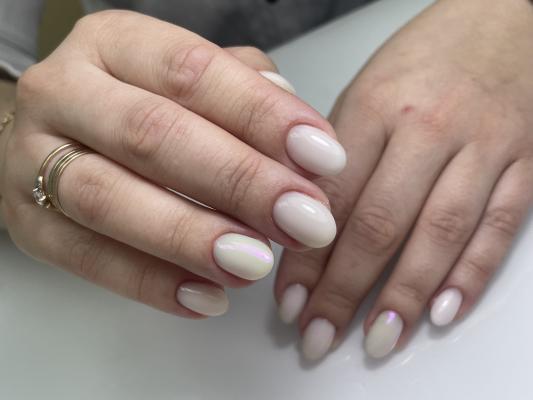 - наращивание ногтей + долговременное однотонное покрытие: