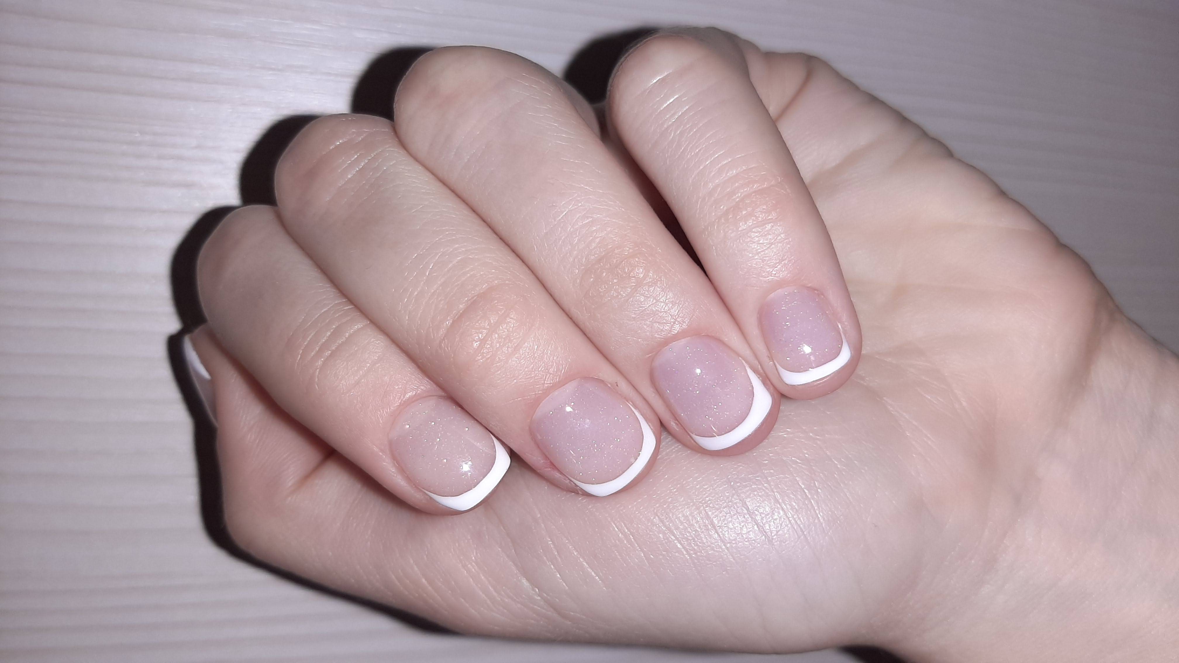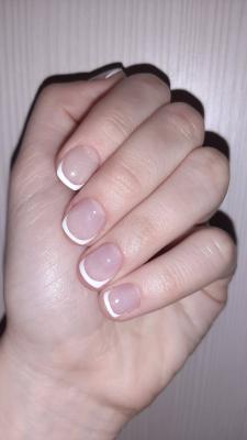 - наращивание ногтей + долговременное покрытие френч: