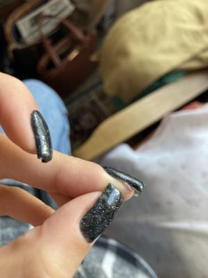 Здравствуйте, изначально не хотела оставлять не очень хороший отзыв в виду того что девушка делающая маникюр очень приятный человек, но все же поделюсь своим опытом. Маникюр изначально был сделан не очень качественно: ногти в сравнении с предидущим моим опытом выровнены криво, где-то больше лака где-то меньше и в принципе слой очень тонкий и ненадежный, топом покрыты не везде (из-за этого кстати уже в одном месте слез лак, делала ногти 3 дня назад) + лак затек в некоторых местах и приклеился к ногтям из-за чего я постоянно цепляюсь за одежду + у меня было надломано два ногтя и за дополнительную плату мне их укрепили, но, опять же, на 3 день у меня *укрепление* разрушилось и ноготь снова надломан. Претензий я никаких не имею. Фотографии ногтей сделаны сразу же после салона.