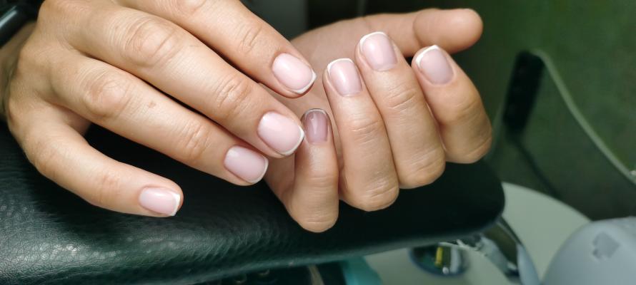 - коррекция ногтей + долговременное покрытие френч: