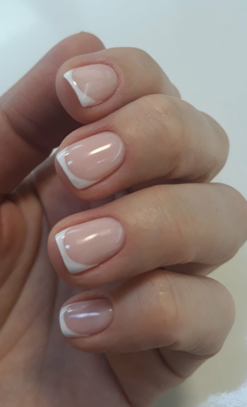 - коррекция ногтей + долговременное покрытие френч: