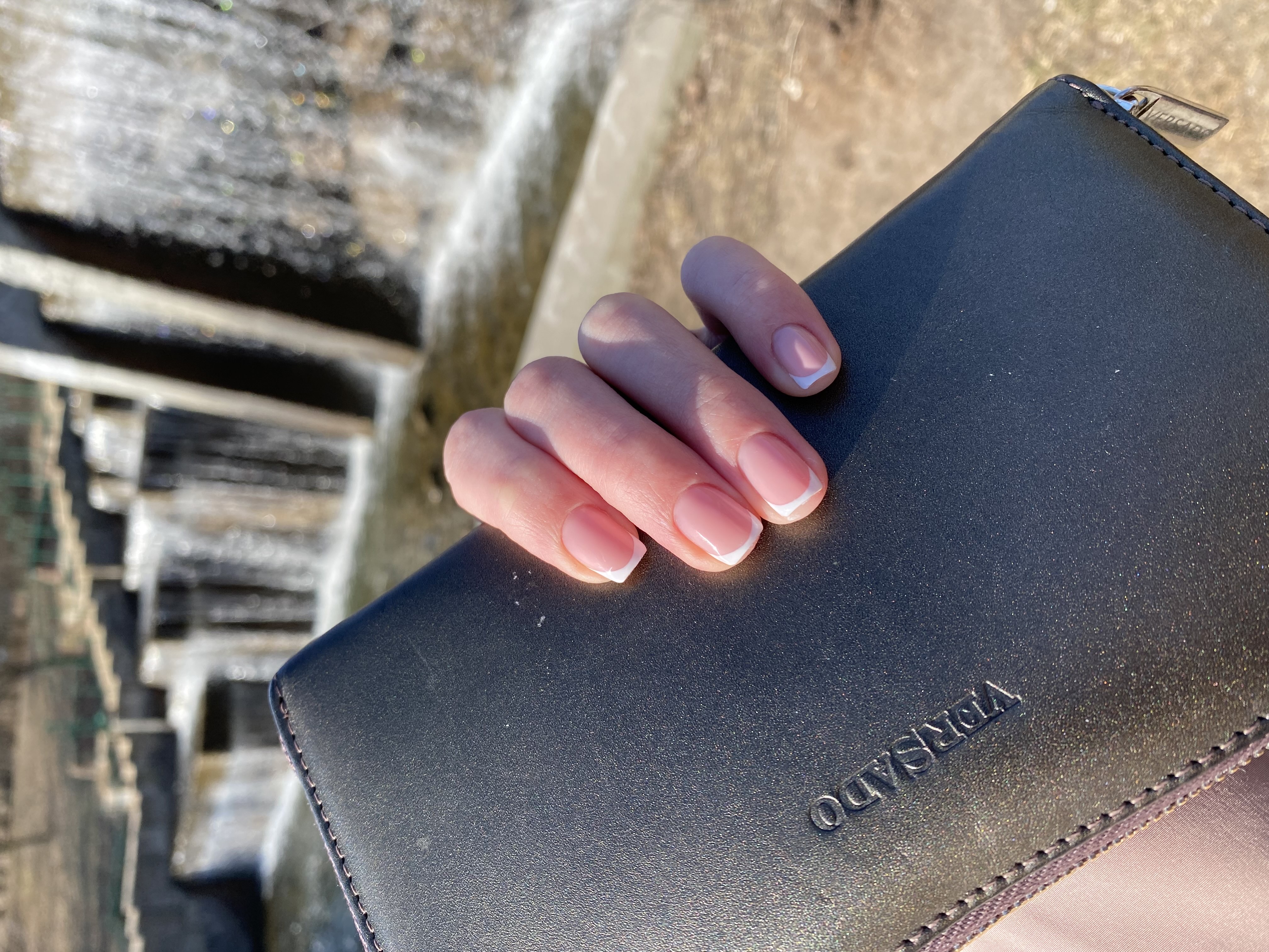- наращивание ногтей + долговременное покрытие френч: