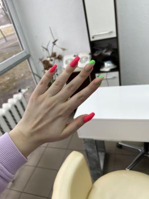 Ходила на маникюр к Веронике 💅🏻 На этот раз попросила мастера сделать дизайн-сюрприз и не прогадала, вдохновившись моим стилем одежды сделали современный и очень яркий дизайн, все быстро и максимально аккуратно: чёткая форма, чистый маникюр и покрытие без затеков, гармонично подобранные цвета! Мастер способна поддержать любую беседу, благодаря чему время в салоне пролетает легко и непринужденно.Приду ещё🥰