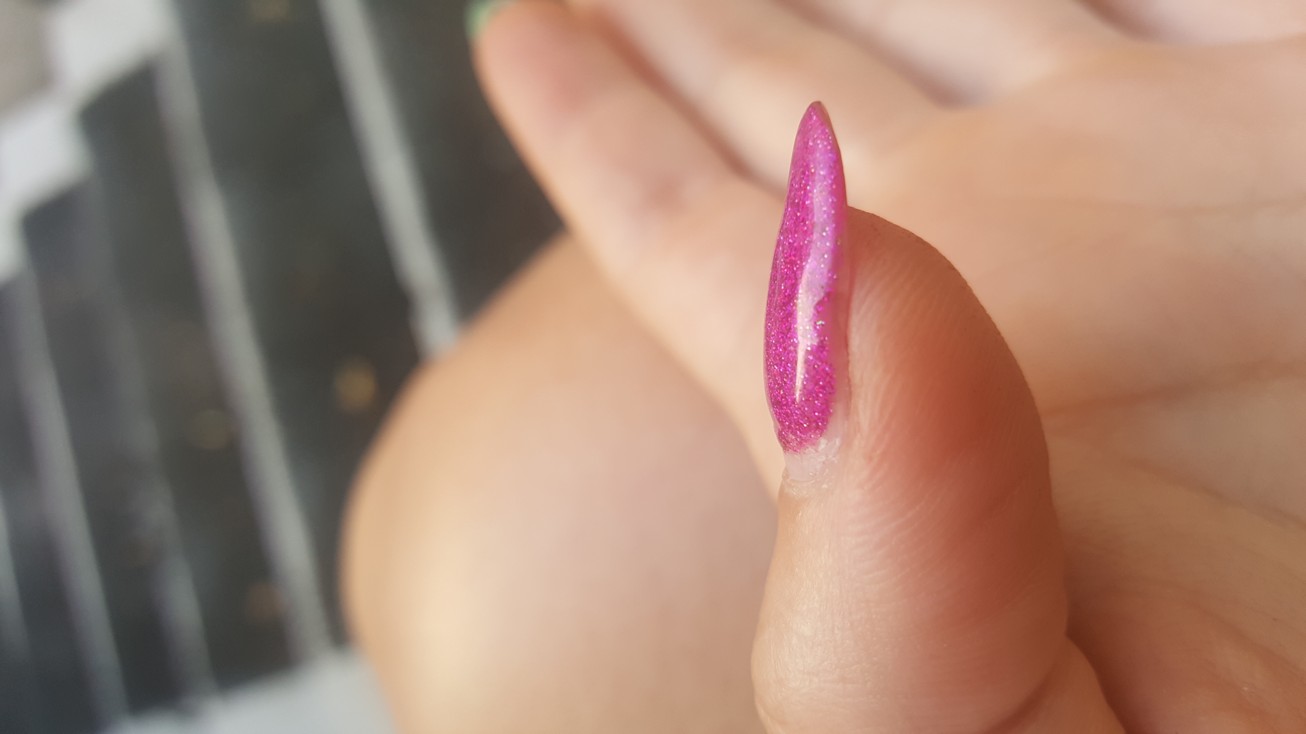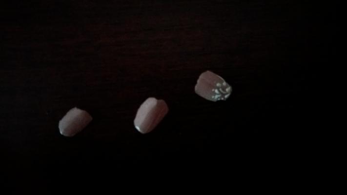 Это 3 день после "маникюра".Кутикула не обработана,ногти все со сколами.Отваливаться стали на 2 день, 2 переделали, но на следующий день посыпались все остальные.