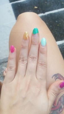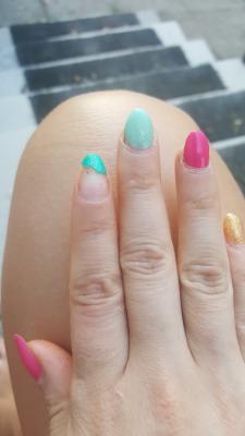Чесно ехала в такую даль основываясь на отзывах,  но сделали отвратительно.  Не буду ничего говорить про выбор цвета мастера т.к рассчитывала на ее професионализм,  но по цвету это ее инициатива..и вышли все типо с дизайном..  В общем за маникюр и педекюр вышло 73 рублей.  Дофига для акции в 90%.  Но и на это я отпустила глаза,  надеясь на качество.  Заплатила за выравнивание и укрепление ногти все горбатые,  и впервые вижу чтобы укрепление гелем слазило так как на фото.  Думала поношу 3 обещанные недели и переделаю.. Но на 7 день отвалился гель вместе с выравниванием,  хотя даже посуду ниразу не мыла. .  И сейчас 10 день слазит все.  В течении нескольких дней как смогу приехать в ваш салон приеду писать жалобу.  фото прилагаю
