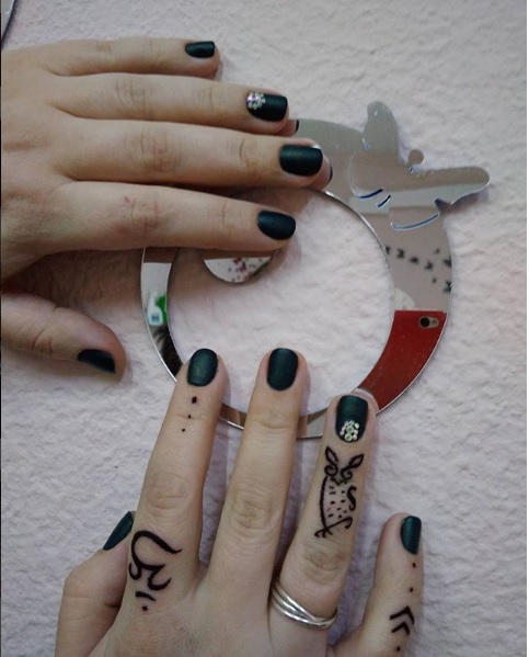 Пример нашей работы. И тату на пальчиках и маникюр с покрытием и дизайном.