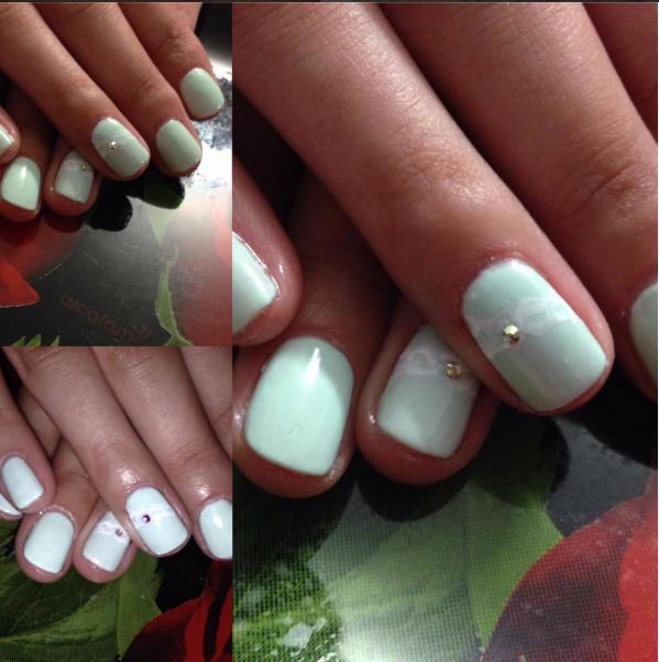 Маникюр со стразом и дизайном.