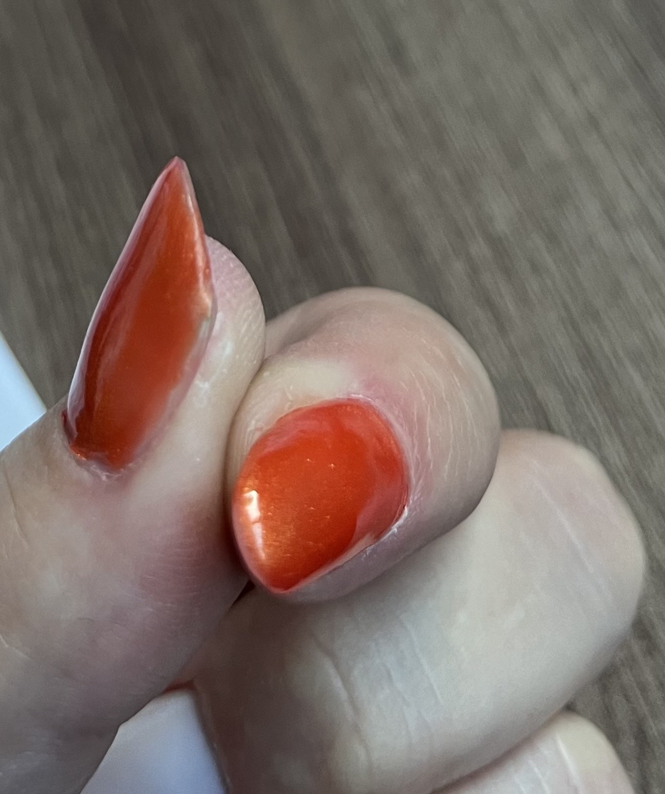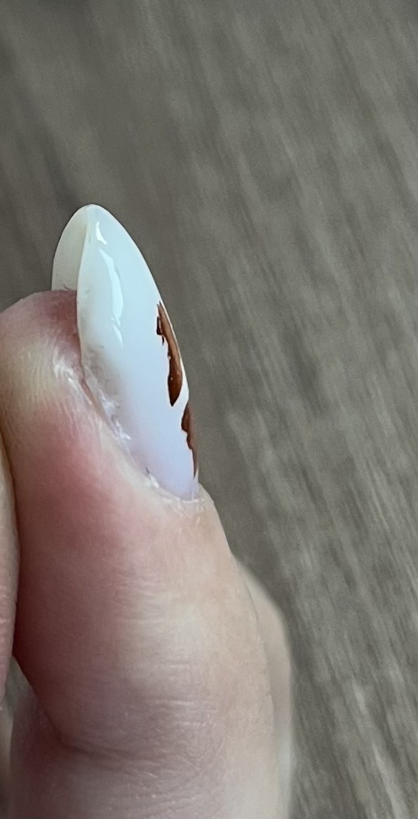 Наступило утро и можно при дневном освещении все нормально рассмотреть. Конечно я очень огорчена, как будто я попала к стажеру. Я вперве в своей жизни попала к мастеру, который ничего не может предложить не по цветам , не по дизайну, даже рисовать не умеет. Кутикула обработана плохо, грубые валики на пальцах практически не тронуты, сегодня они такие же грубые как и были. По поводу времени, когда я сказала про пожелания по дизайну, мастер сказала, что возможно мы не успеем, так зачем я к вам пришла тогда. До этого делала маникюр у Инны, вот она было золото.