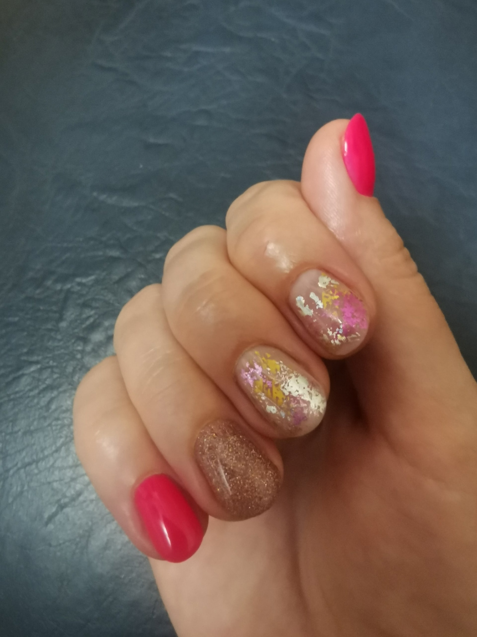 Сейчас прошло 5 дней, и что я скажу. На ногтях , где нанесена фольга и затем заключительный прозрачный слой, уже на концах покрытие стерлось. 5 дней!!!!! и это нормальный мастер? там сидят такое ощущение спецы-мастера, которым абсолютно начхать на репутацию и свою и салона, абы сделать. Фото прикрепляю, где если присмотреться, то видно, что покрытие слазит уже.