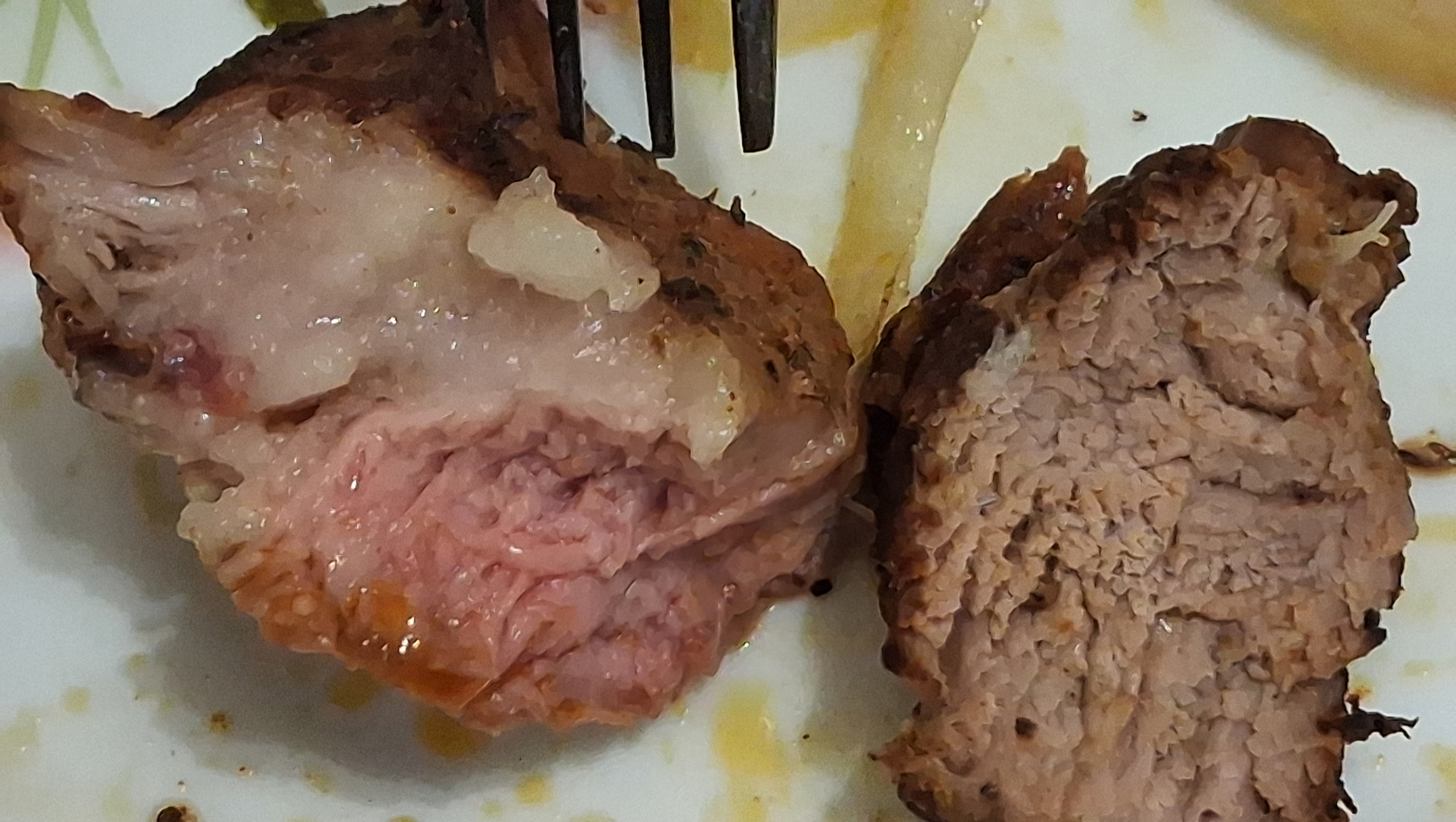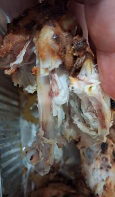 2) В каждом из заказов были непрожаренные куски мяса и курицы. Опять же, в 1 раз решили закрыть глаза. Во второй раз зафиксировали и решили как-нибудь потом. А вдруг все нормализуется.