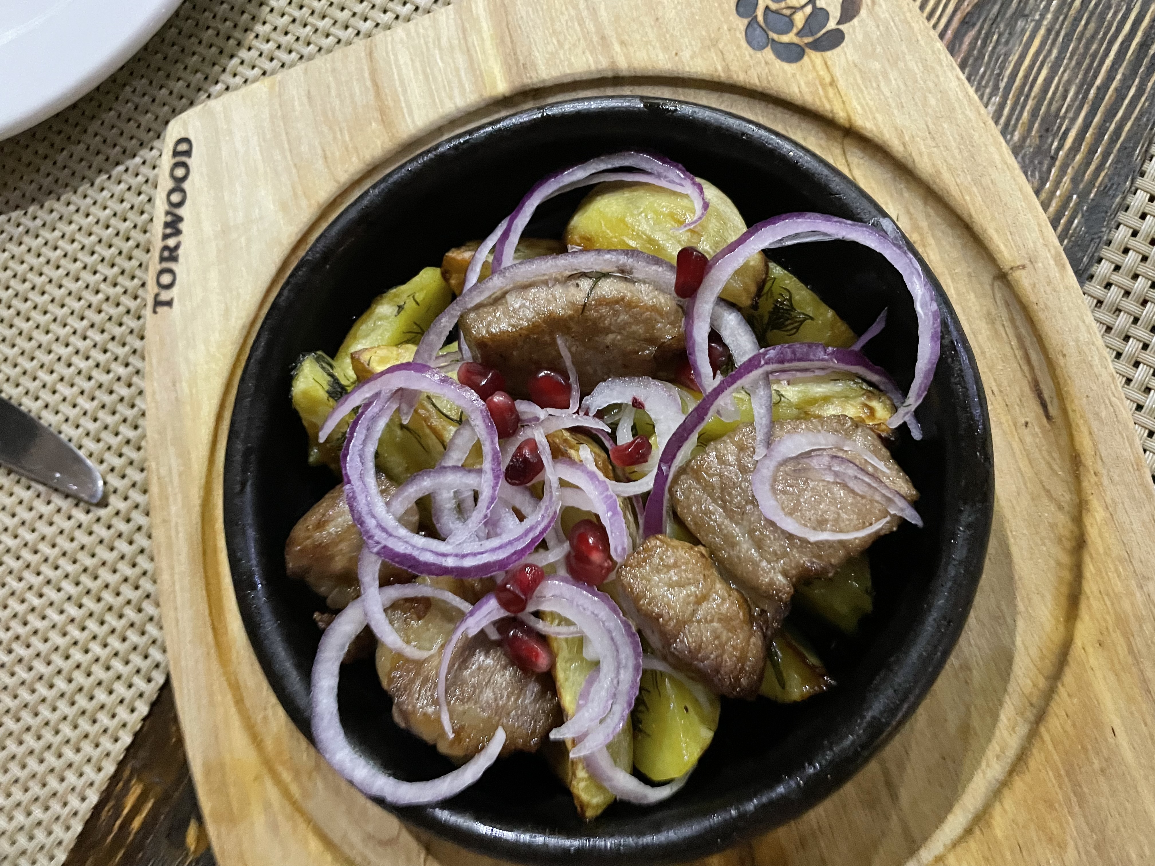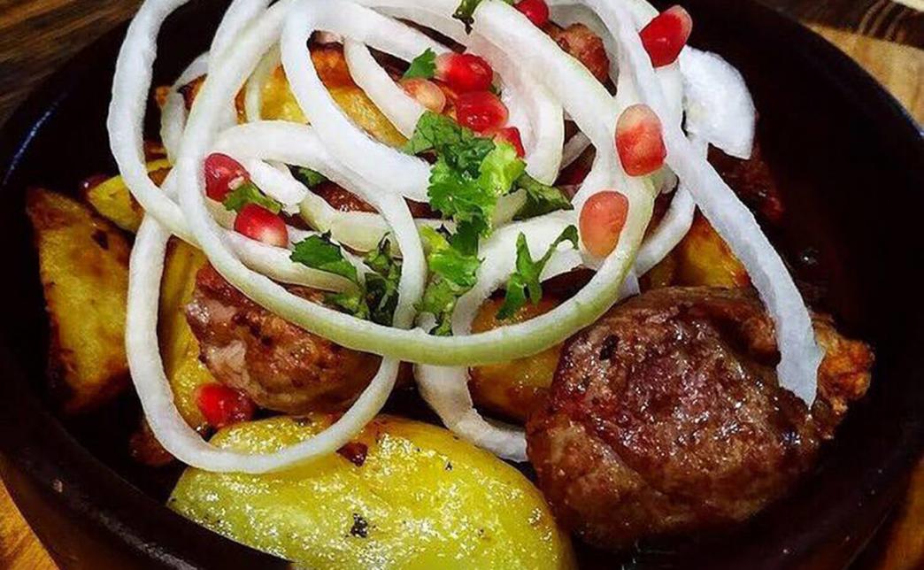 - оджахури (250 г, 1 порция): картофель, свинина, лук репчатый, гранат