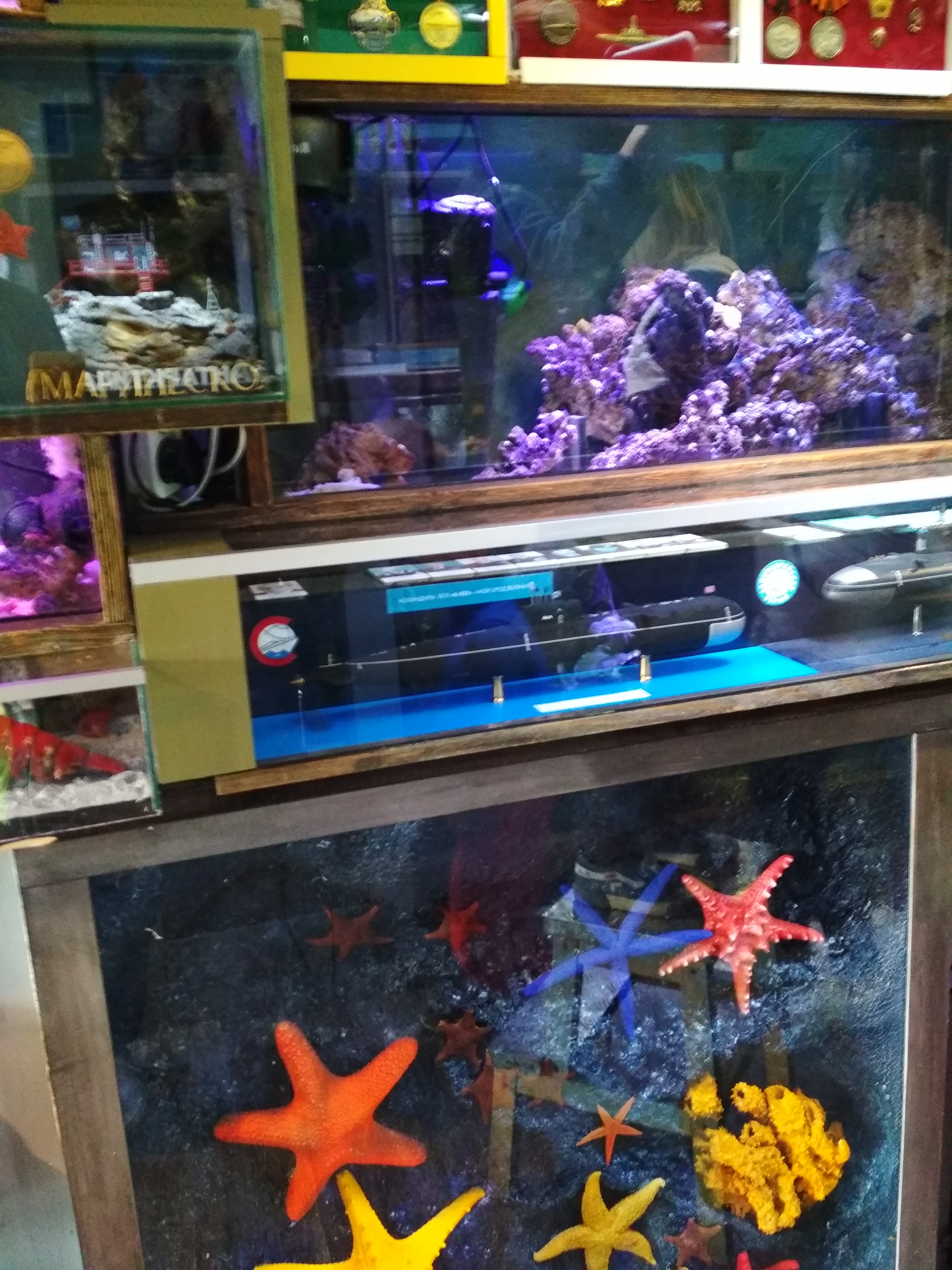Вас ждет мини-океанариум с экзотическими обитателями: рыбки немо, голубые хирурги, пресноводный лангуст и краб-декоратор, водная черепаха, тропические раки и рыбки-карамельки, акуленок Академик.