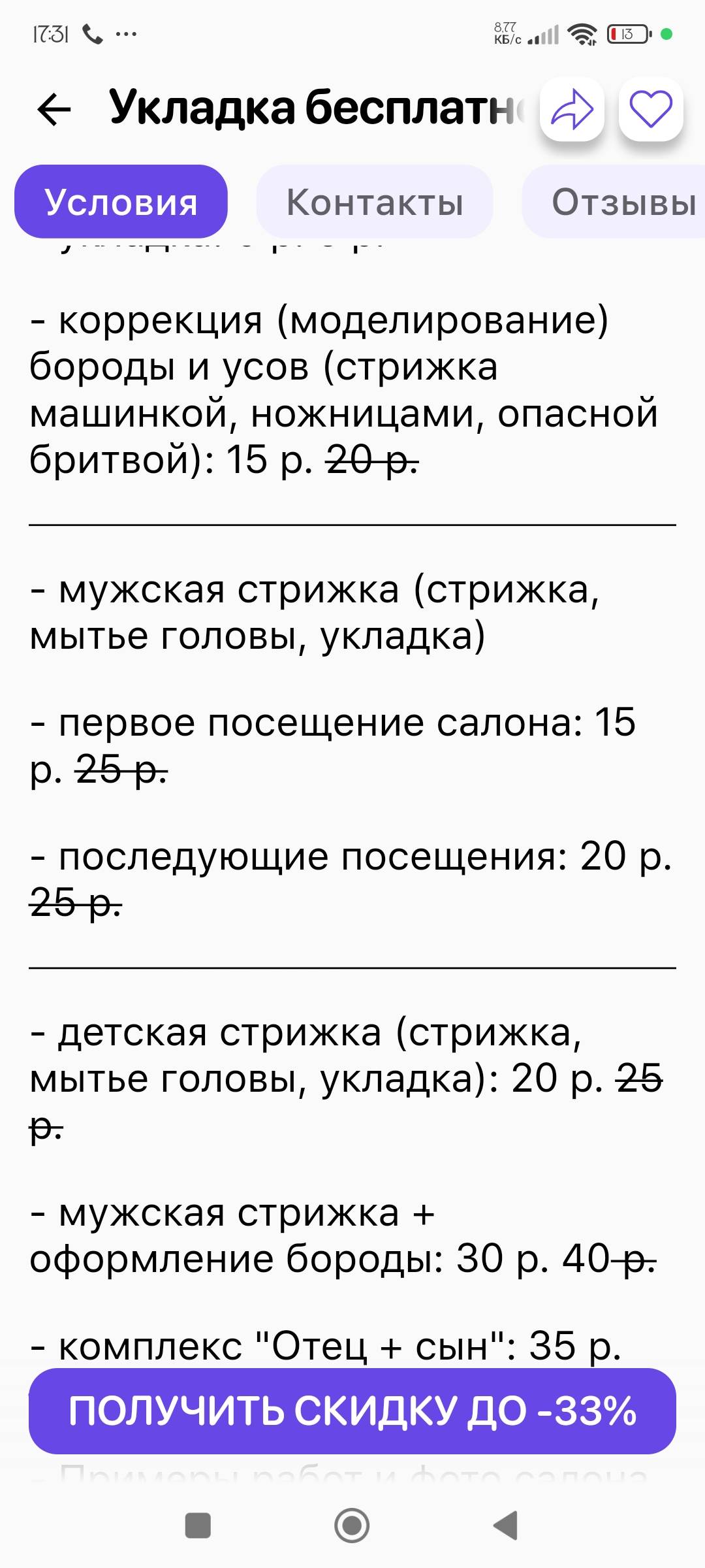 - первое посещение салона: 20 р. 25 р.