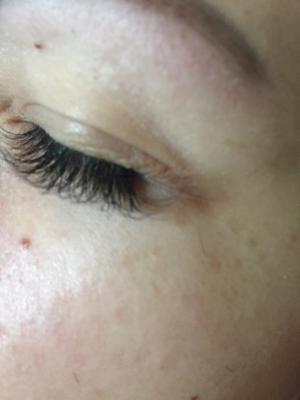Делала 2 д наращивание , на него вообще слабо похоже . Видимо чтобы меньше тратить времени на клиента , мастер клеит ресницы очень редко и ёлочкой , от чего ресницы сейчас похожи на еловую ветку и торчат в разные стороны. Зря потраченные деньги! Фото работ на сайте вообще не соответствуют.