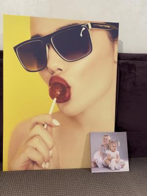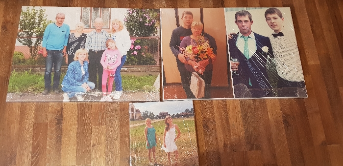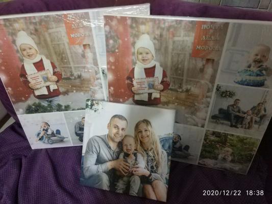 Заказывала 5 холстов различных размеров. К сожалению, осталась недовольна качеством. Думала, что все компании делают приблизительно одинаково, а оказалось, что есть разный уровень качества фотохолста. Не понравилось, что сами холсты (фотографии) будто в крапинку (как в пикселях) и эти точки очень видны, фото при свете под углом сильно отсвечивает. Ранее заказывали у другой фирмы, там холст идеально гладкий, таких моментов не было совсем. Возможно, это такой тип холста и печати, кому-то и так подойдет. Мы, конечно, холсты не выкинем, но будем знать теперь, что нужно уточнять у продавца:)