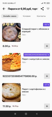 - пироги: от 8,55 р. от 18 р.
