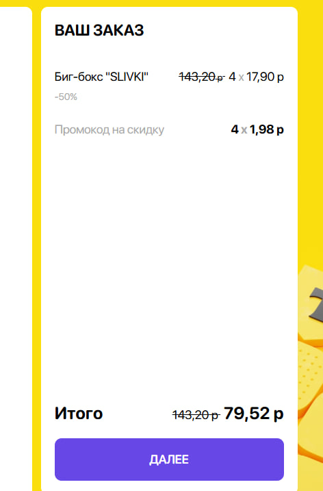 - биг-бокс "SLIVKI" (24 шт): 17,90 р. 35,80 р.