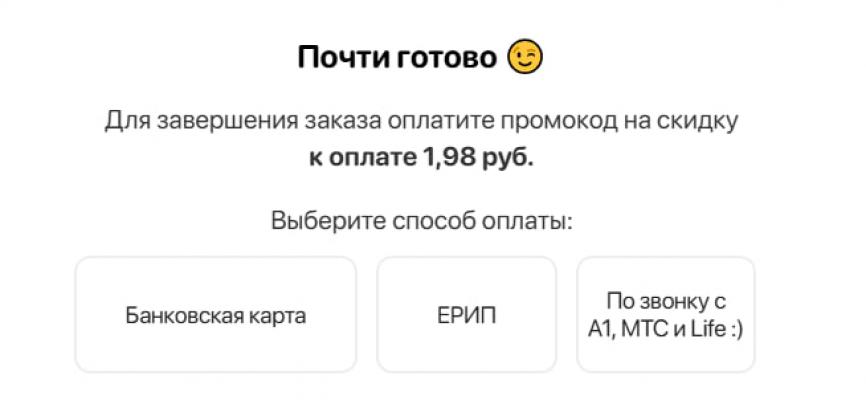 - предъявите промокод: получите скидку при получении заказа.