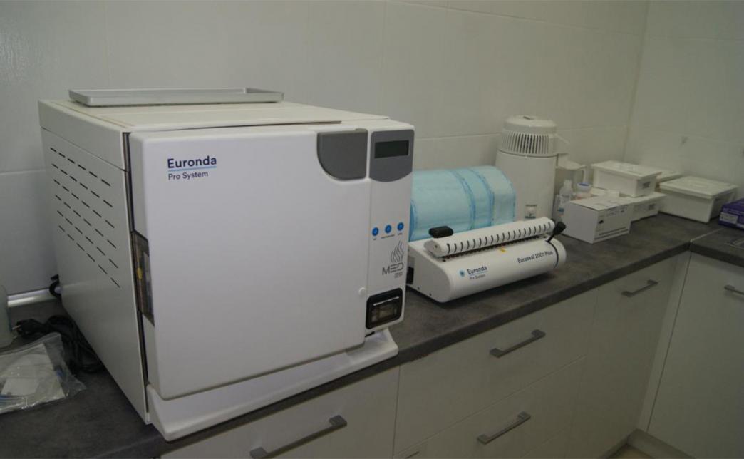 В стерилизационной комнате используется новейшее оборудование итальянского производства "Euronda", что при точном соблюдении всех инструкций по дезинфекции и стерилизации медицинских инструментов позволяет обеспечить безопасность наших пациентов.