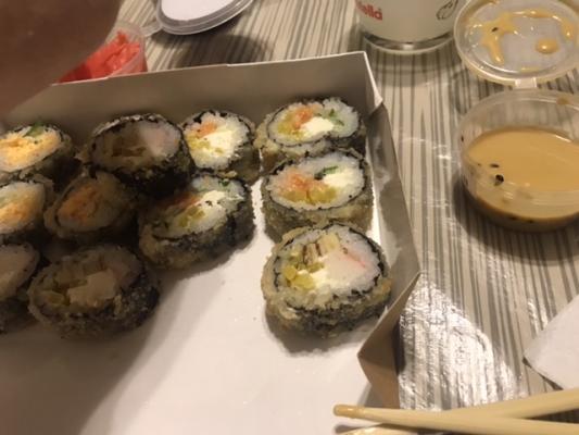 Суши очень вкусные !Свежие было на 100%.Доставка быстрая.Обязательно ещё закажем .