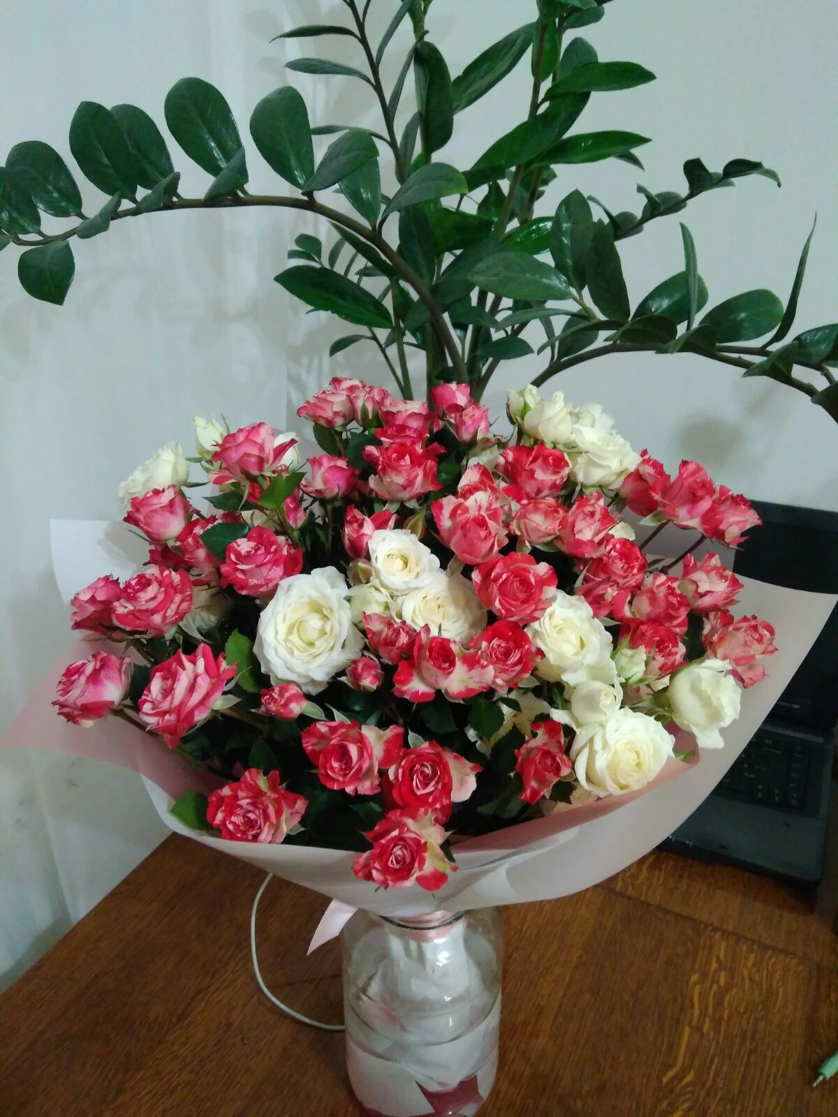 Просто бесподобный букет!!! Мама была очень рада! Спасибо огромное, moreroz.by! И с выбором помогли( прислали фото имеющихся в наличии роз) и с доставкой не подвели. Стоят уже вторую неделю. По-моему печальному опыту - это фантастика какая-то!!!. Не часто удаётся сэкономить, не потеряв в качестве ))