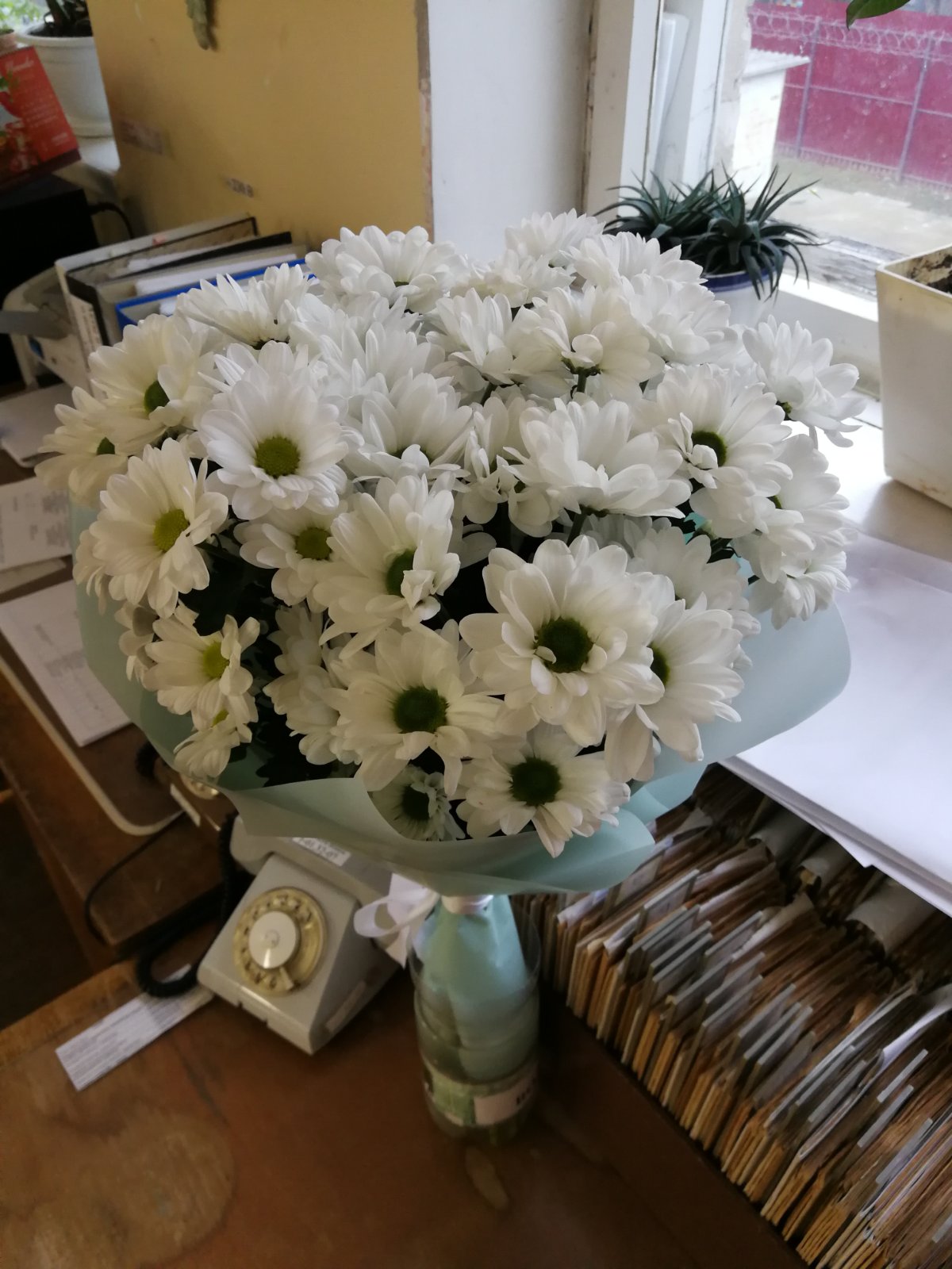 Не первый раз беру тут цветы. В этот раз брала ромашки. Приехала и не вручили букетик, не такой уж и пышный , как я того ожидала. Вручила букет адресату и через пару дней мне прислали фото этого букета- как он распустился и какие ромашечки стали красивые! Поэтому я рада, что цветы действительно были свежие и ещё долго радуют одаряемого! Первое фото- цветы при получении, второе фото- цветы спустя 4 дня!