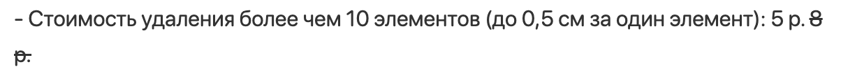 - Стоимость удаления более чем 10 элементов (до 0,5 см за один элемент): 5 р. 8 р.