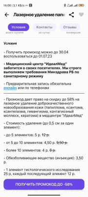 - Промокод дает право на скидку 38% на лазерное удаление доброкачественного новообразования кожи (папиллома, ксантома, ксантелазма, гемангиома, контагиозный моллюск, кератома) в медцентре "ИдеалМед"