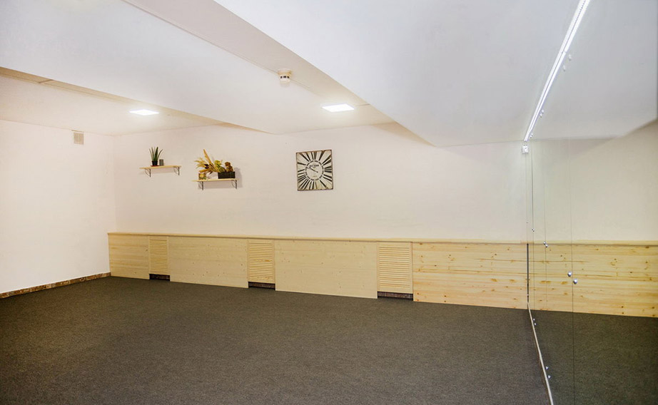 Зальчик не большой, когда на занятии нас 7-8-9 все помещаются отлично, наверное человека 4 еще поместилось бы, не больше.