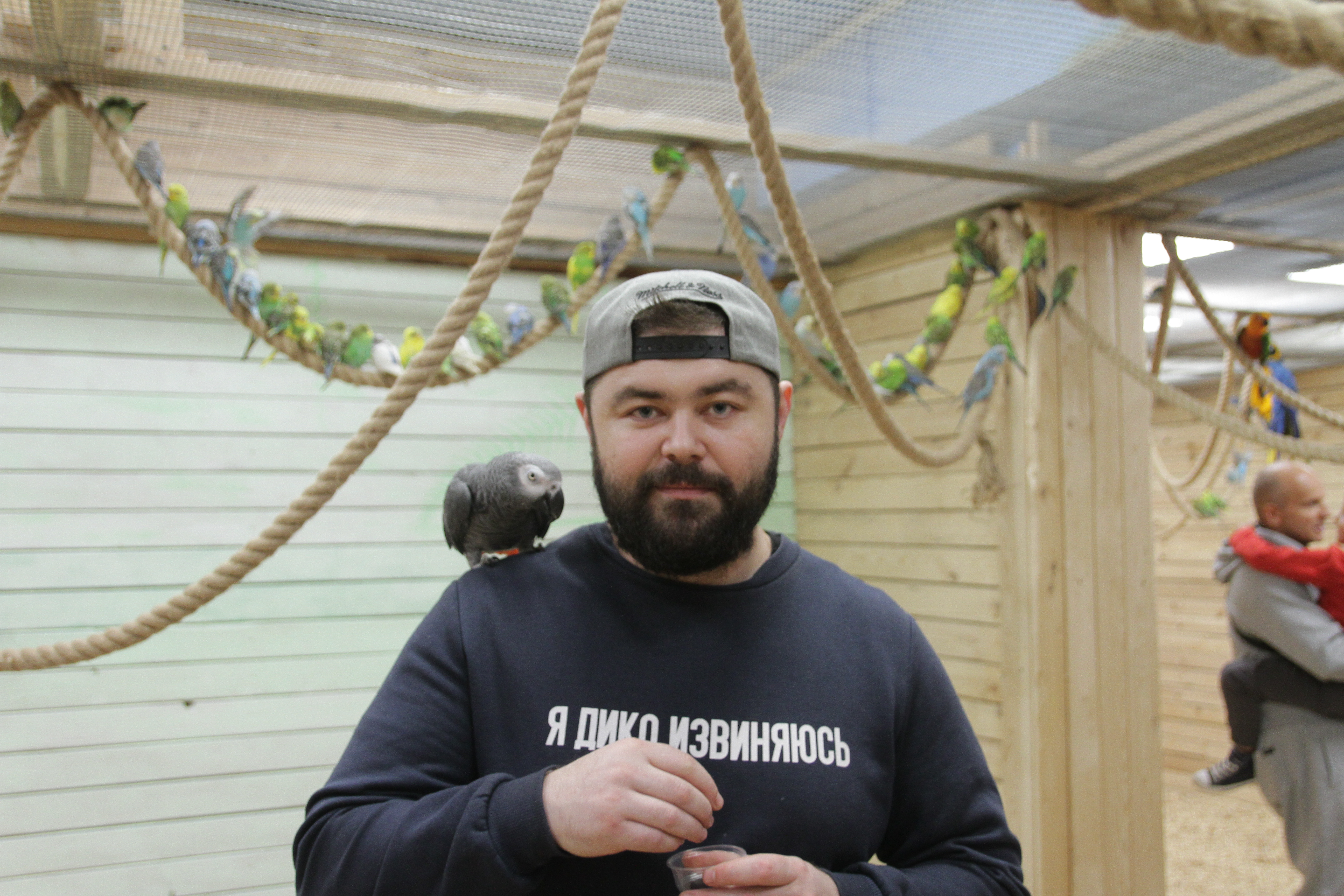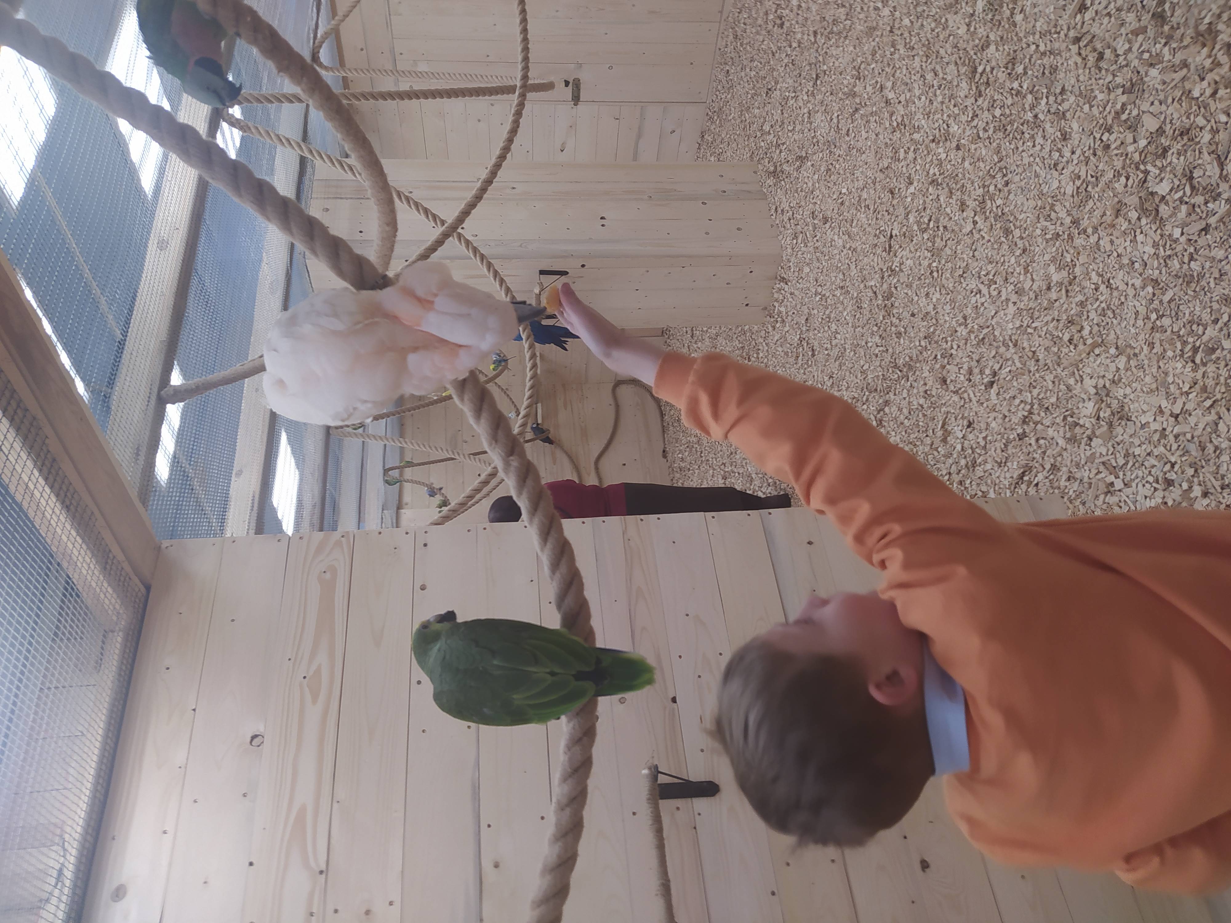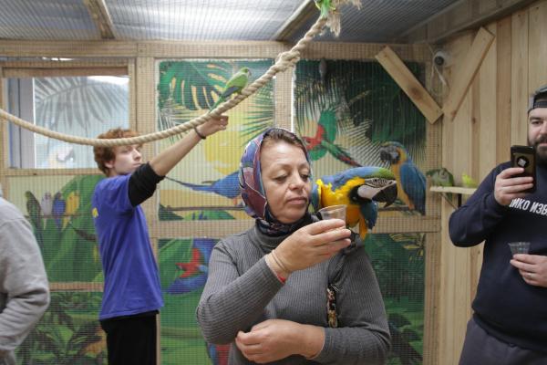Когтями птицы могут зацепить вашу одежду, пожалуйста имейте это ввиду при посещении. У администратора можно приобрести накидку