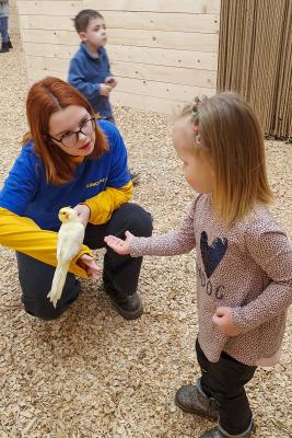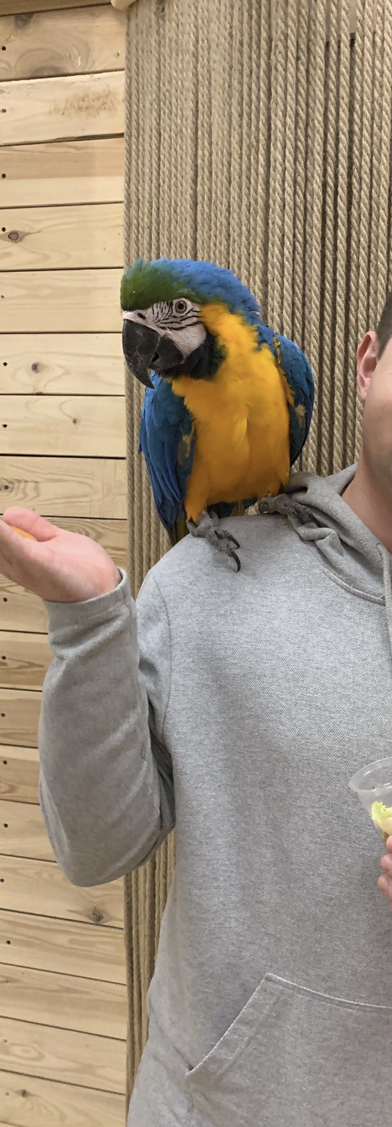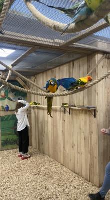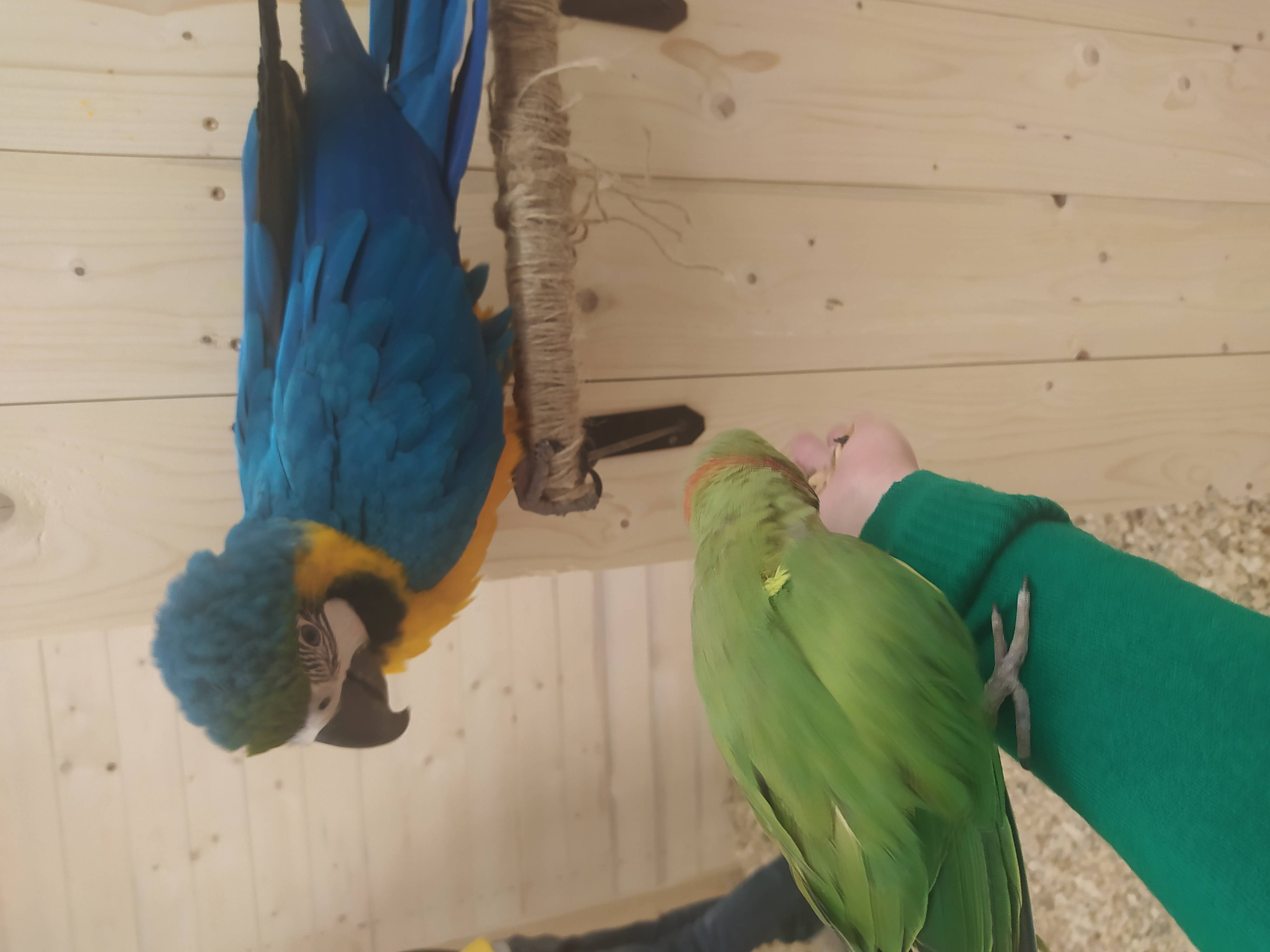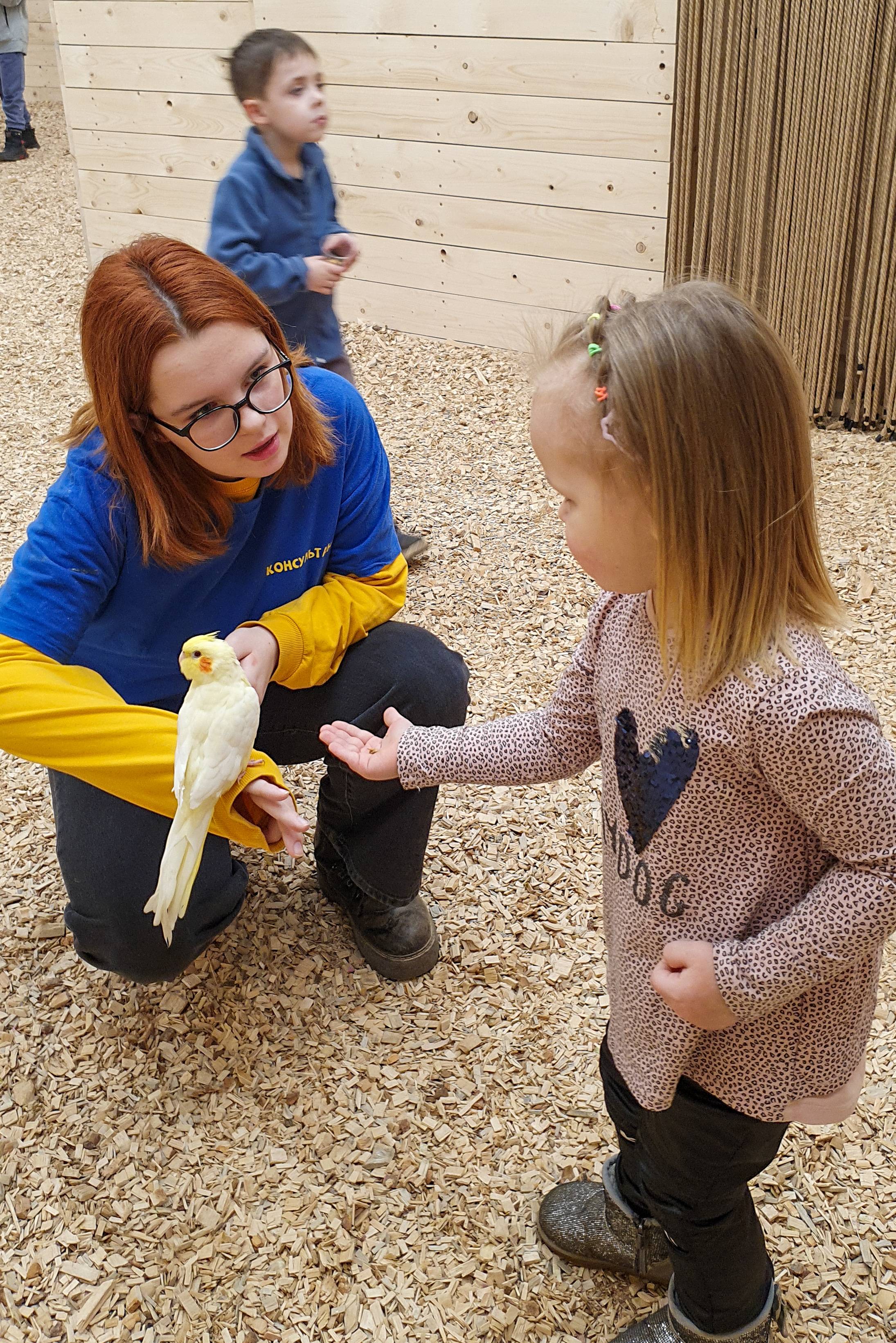 Когтями птицы могут зацепить вашу одежду, пожалуйста имейте это ввиду при посещении. У администратора можно приобрести накидку